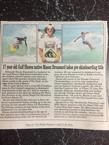 We are stoked for Zap Skimboards team rider Mason Broussard who recently made it in the local paper! Nice work Continue Reading